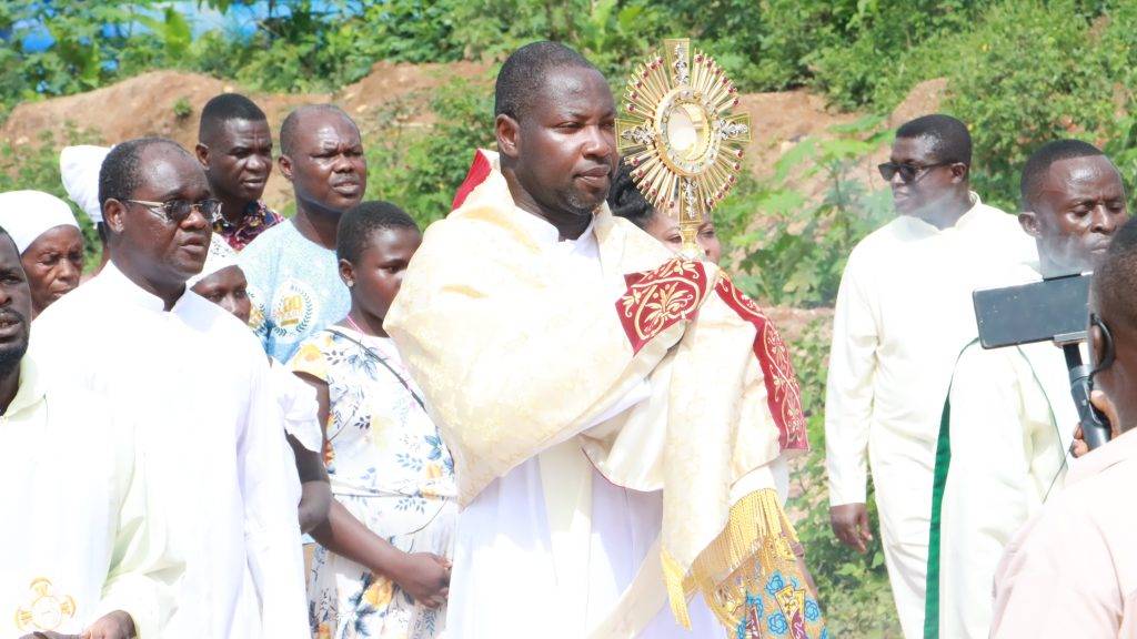 It was the solemnity of the feast of Christ the King, which was celebrated in the Abream Essiam. After the Eucharistic celebration, there was the adoration of the Blessed Sacrament monstrance, which was carried and paraded through the principal streets of the town, accompanied by the praying of the Holy Rosary and the chanting of Catholic hymns.